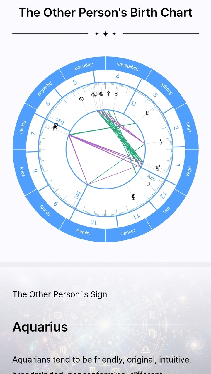 The Natal Chart comparison was very detailed. I didn't know our Moon signs were incompatible, which explains why we hurt each other unintentionally. Knowing this helps me understand him better without blaming myself.
