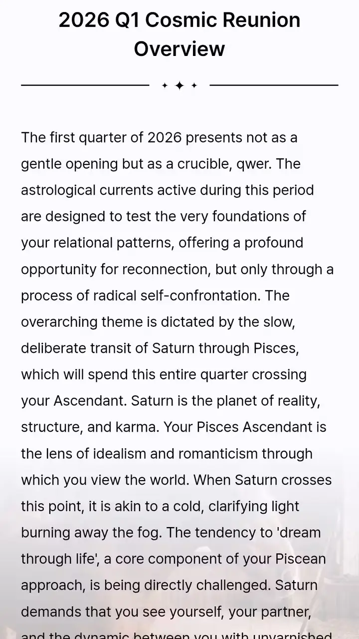 2026 Q1 Reunion Premium Astrology Report: Cosmic Alignment