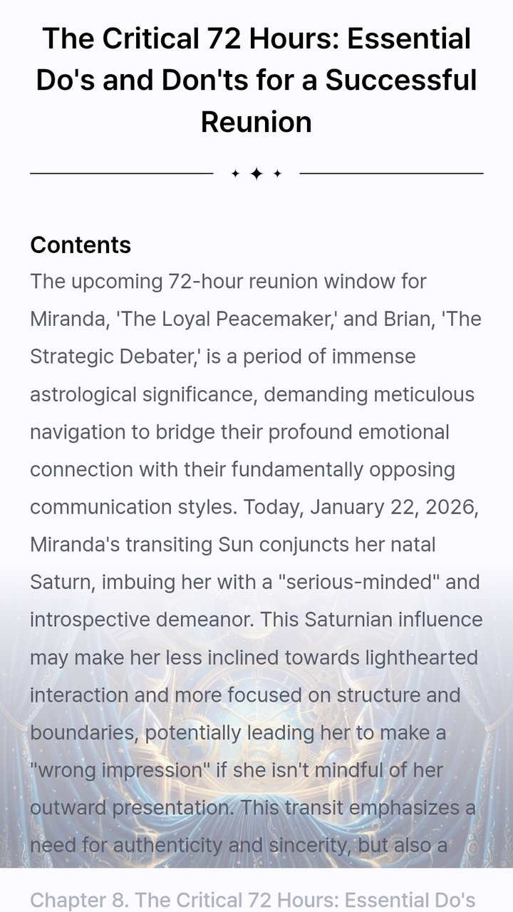 Unlock the hidden truth of your breakup through a professional analysis of your Synastry and Planetary Transits. We reveal your ex's subconscious feelings and provide a precise, realistic action plan to reignite the spark within the critical 72-hour golden window.